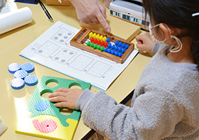 幼児向けキッズコースでは具体物(教具)を使って数の感覚を身につけ、小学校入学後、算数が大好きになるよう指導します。