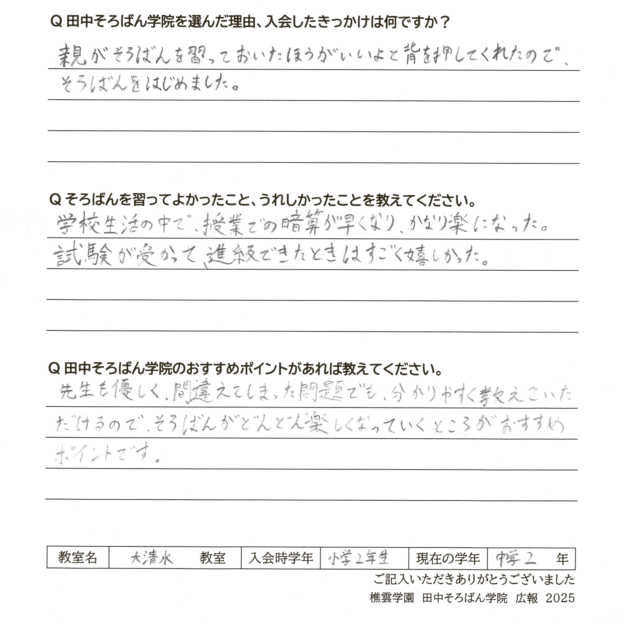 親がそろばんを習っておいたほうがいいよと背を押してくれたので、そろばんをはじめました。