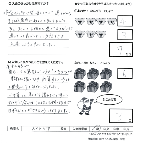 友人知人の子供さん達がそろばんに通っていて良かったという話を聞き入会しようと思いました。